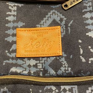 EUC Unisex Blue Canvas Beige Leather Native Print Kelty Backpack