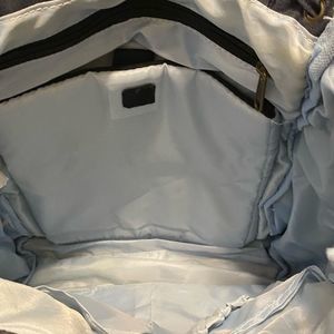 Great looking bag in great condition! No stains, rips, or tears. Inside pockets are clean, and zippers move freely. Measures 16x13x6”.
