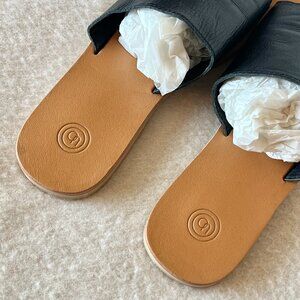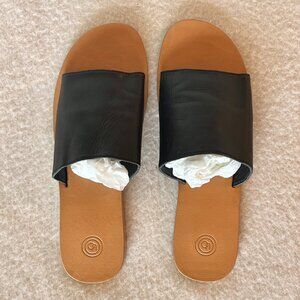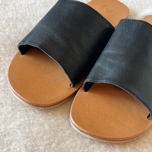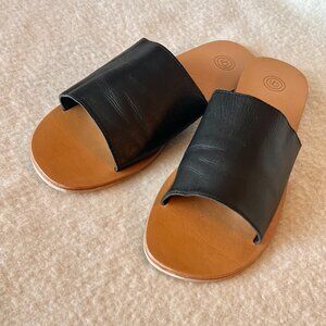 EUC - Urban Outfitters Soft Genuine Leather Slide Sandal - Black & Tan - Size: 7