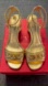 EUC VALENTINO GARAVANI Metal V Logo Block Heel Sandals, Gold, Sz 39.5