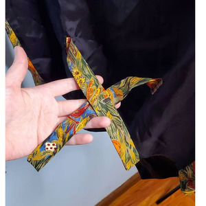 Description: Vintage multicolored Fall-themed vest featuring pumpkins, jack-o-lanterns, scarecrows, crows, and a corn field by 111 Main. Size Medium. Orange, green, blue, yellow, white, black. Cute fall vest. Can be sized at the back.