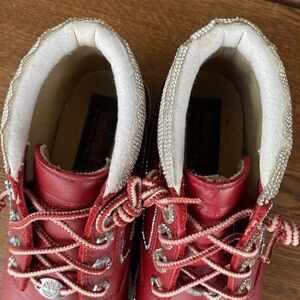 EUC VINTAGE BLINGED TIMBERLAND WATERPROOF LACE UP 5” RED BOOT