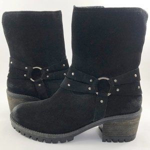 EUC VINTAGE FOUNDRY Sienna Black Suede Lug Sole Ankle Harness Western Boot 11