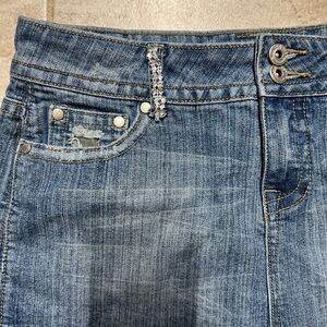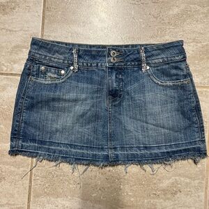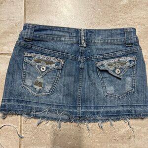 ππVINTAGE SUPER CUTE DISTRESSED DENIM MINI SKIRT WITH RHINESTONES AND CAMO ON THE BACK POCKETS ππ