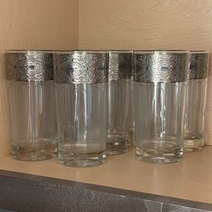This 4 Piece Set of Glasses has a Beautiful Intricate Design using Black, Blue & Silver colors framing the top and Blue down each Glass. These are perfect for Entertaining & Special Occasions!!