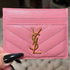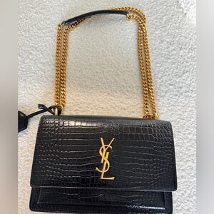 EUC!! Vintage YSL caramel colored clutch with embossed logo. Remarkably clean interior with YSL logo fabric. Three separate compartments. Gold toned zipper pull in stunning condition. EUC no callouts at all except for some very very minor rubbing on corners. See pictures. You might almost think this bag was never used. Add a strap insert and use as a crossbody or shoulder bag. Gorgeous VINTAGE YSL bag. Great find!!