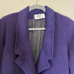 EUC VTG 80s Billi Billycoat Purple Wool Blend Long Overcoat Power Dressing Coat