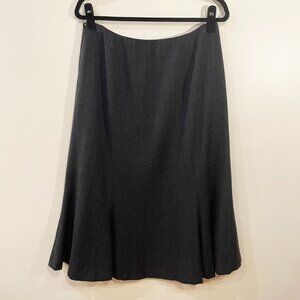 EUC VTG LRL 100% Wool Trumpet Hem Herringbone Midi Skirt Charcoal 10