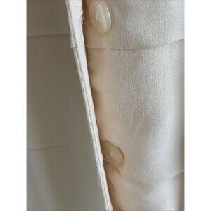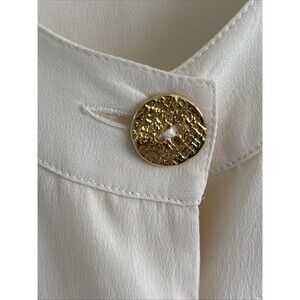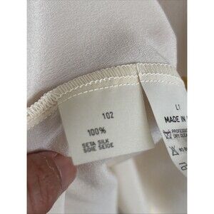 100% silk. Made in Italy. Size 29. Translates to US size 20. XXL. Excellent condition. Has shoulder pads but you can cut out if you dont like that look. Cream ivory color. Ruffle in front. 24 inches. 28.5 inches long. Vintage. Included spare buttons.