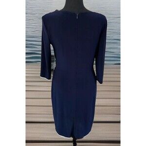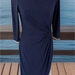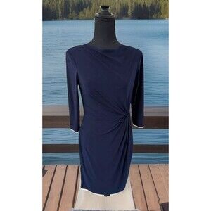 EUC VTG Rare Ralph Lauren navy blue 3/4 sleeves cowl neck front knot dress 4