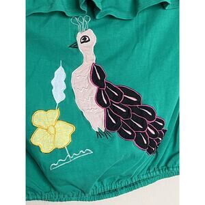 EUC VaVa By Joy Han Green Embroidered Boho Cold Shoulder Crop Top Sz M