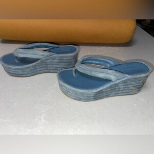 EUC Veronica Beard Geno Ribbed Suede Platform Wedge Thong Sandals