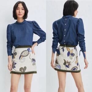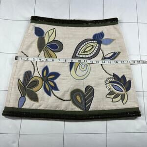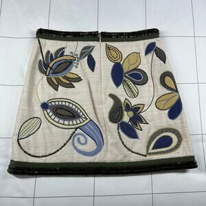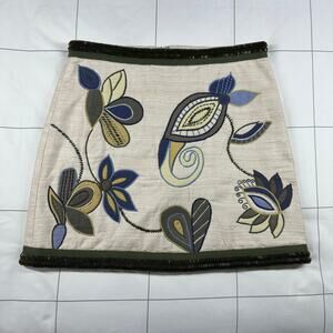 Stylish mini skirt with vibrant floral patterns and intricate beading. Perfect for a chic look.