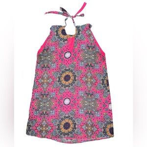 {EUC Veronica M Psychedelic Halter Mini Dress Pink Medallion Multicolor XS}