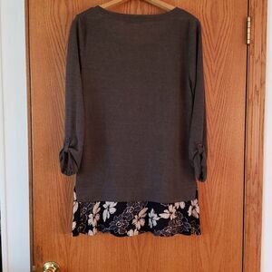 EUC Very Pretty Gray Top with Floral Contrast at Bottom Sz L