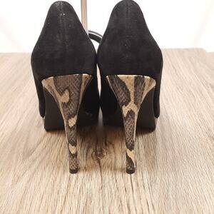 EUC VN Via Neroli Black suede Heels sz 8 with snake skin print heel and small platform KR