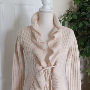 EUC Vici Ruffled Tie-Front Bell Sleeve Cream Cardigan Size Small