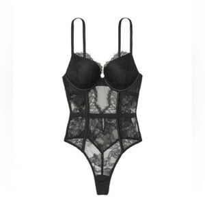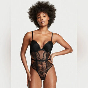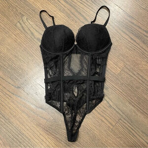 EUC Victorias Secret Black Bustier Push Up All Over Lace Teddy | Size XS
