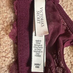 EUC Victoria's Secret Dream Angels Lined Demi Bra, Red Purple Detailed Lace 36DD