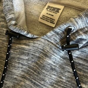EUC Victoria’s Secret PINK grey space dye cropped hoodie, size M. Back cutout. Fits roomy and can fit a large more fitted. Toggle hoodie drawstring. Lightweight and breathable.