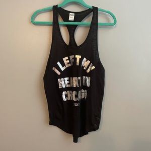 Pink Victoria's Secret oversized tank. Black in color with silver print print on the front that says I left my heart in Chicago.