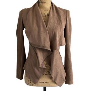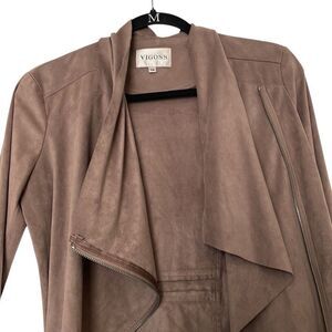 EUC! Vigoss Taupe Brown Faux Suede Drape Front Moto Jacket Size XS