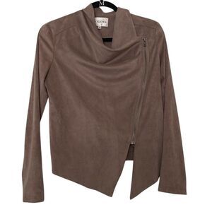 Vigoss Taupe Brown Faux Suede Drape Front Moto Jacket Size XS. Purchased at Nordstrom.