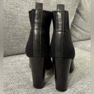 EUC Vince Aren Open Toe Black Leather & Wool Heeled Boots | Chic Block Heel Booties 8