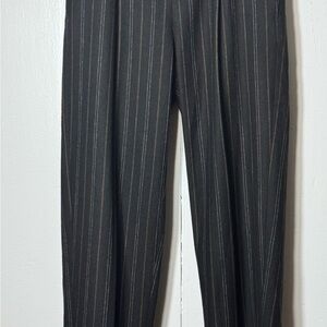 Italian fabric. Stylish black with tan stripes cropped pants. Pull on style with elastic back waist. Beautiful Quality from this high end designer. Soft and comfortable. Ideal for any occasion or professional setting. EUC