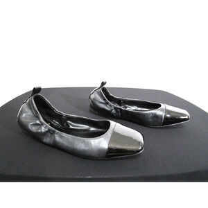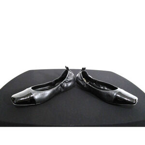 VINCE CAMUTO BLACK LEATHER & PATENT SQUARE CAP TOE BALLET FLATS WOMEN 6.5 M