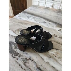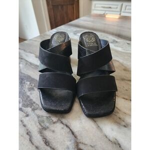 EUC Vince Camuto Jestimel Saygan Black Leather Slide Sandals Sz 7