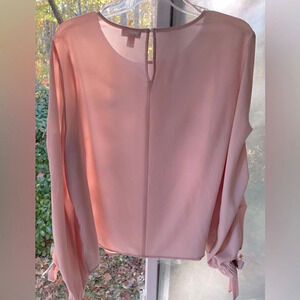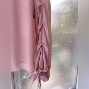 EUC Vince Camuto XL soft pink L/S blouse with darts and rueshing down sleeves.