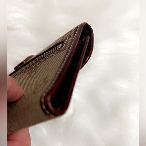 EUC Vintage 1975 Dooney & Bourke Logo Canvas Brown Leather Trim Wallet 7” X 4”