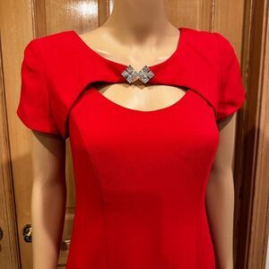 EUC Vintage 1980s Donna Ricco Red Cut-out Rhinestone Detail Neckline Dress