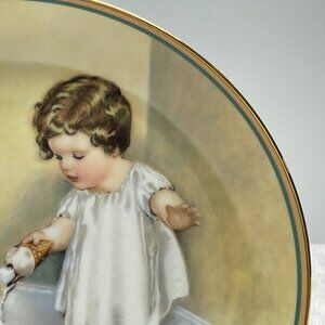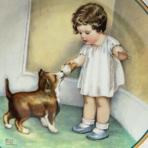 Excellent Used Condition - Vintage 1985 The Hamilton Collectible plate titled "The Reward." Porcelain. Based on original art by Bessie Pease Gutmann (Rockford Editions, Inc., 1935, 1964). 8 1/4" Diameter. Yellow-White-Green-Brown. Second issue in "A Child's Best Friend" collection of 8 plates. Plate Number 2717T. Beautiful addition to a collection! Perfect for anyone who loves Bessie Pease Gutmann's work. Great for display or as a baby shower or new baby gift. From illness/smoke/pet-free home. Select other items from my closet, bundle in 1 order & save on shipping!