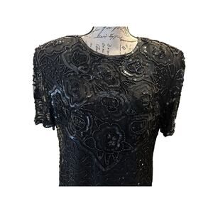 EUC Vintage 90’s Sweetlo Black Beaded Silk Dress Size XL Gatsby Romantic Hokiday
