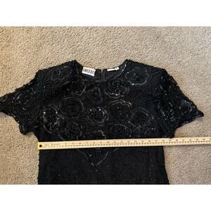EUC Vintage 90’s Sweetlo Black Beaded Silk Dress Size XL Gatsby Romantic Holiday