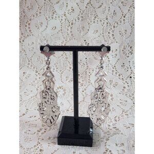 EUC Vintage Art Deco Silver-Tone Crystal Chandelier Earrings
