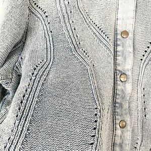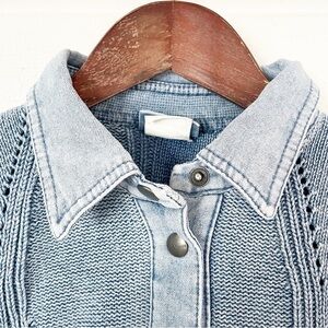 EUC Vintage Blue Willi’s Denmark Cable Knit Jacket Sweater Denim Snap Front