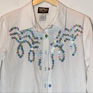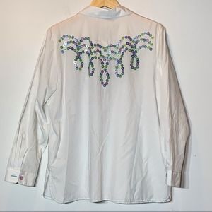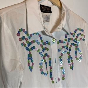 EUC Vintage Bob Mackie wearable art button embellished button down shirt