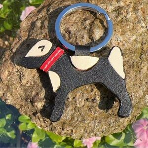 EUC Vintage Coach Dog Leather Bag Charm Keychain