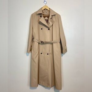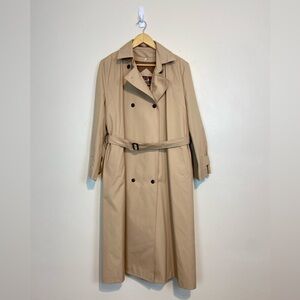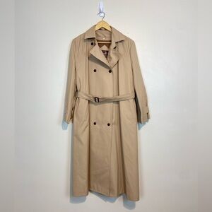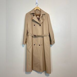 Keywords: vintage trench coat, Etienne Aigner coat, belted trench, classic beige coat, double-breasted coat, removable lining coat, long trench coat, women’s size 12 coat, made in Hong Kong vintage, fall winter outerwear.