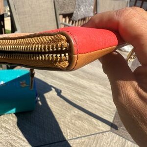 EUC! Vintage Fossil Women's Red, Orange, and Tan Leather Wristlet Long Wallet
