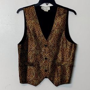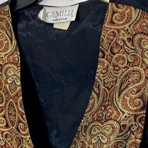 EUC Vintage Gemilli Tapestry Button Front Silky Back Vest
