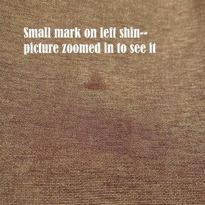 1. Small mark on left shin (see photo--zoomed in to see it)