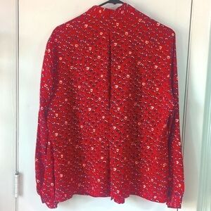 Adorable, mint condition 80s - 90s blouse from "Country Sophisticates" by classic Pendleton fashion brand out of Portalnd, Oregon. Bright, blue-toned red top with abstract, artsy, bohemian "roses" in white and blue. Open to interpretation!