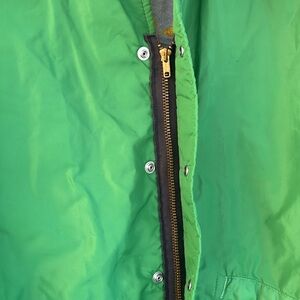 This vintage windbreaker jacket by Dunbrooke is a classic piece perfect for any occasion. The jacket features a solid green color with a patch accent, snap closure, and is made of durable nylon fabric. The cotton lining keeps you comfortable, while the jacket's all-season design makes it a versatile addition to any wardrobe.