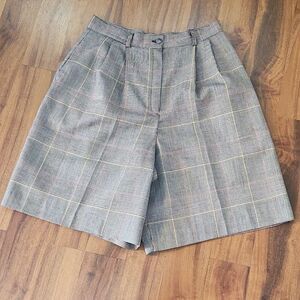 EUC Vintage Plaid Pleated Wool Shorts, 14" flat waist, 15" rise and 9" inseam. These are lined and have front pickets. No flaws and fun piece to dress up or down, great for Fall.