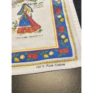 Vintage SICILIA 100% Cotton Tea Towel Dish Kitchen Map Italy Landmarks 32x19.