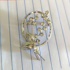 EUC Vintage Sterling Silver Pin Brooch Rhinestone Crystals